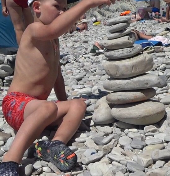 Вам понадобится только галечный пляж. Игроки совместно строят башню из гальки. Каждый игрок по очереди кладет камень, стараясь не разрушить башню. Тот, на ком башня развалилась – выбывает, а оставшиеся игроки начинают новую башню. В результате остается один победитель.